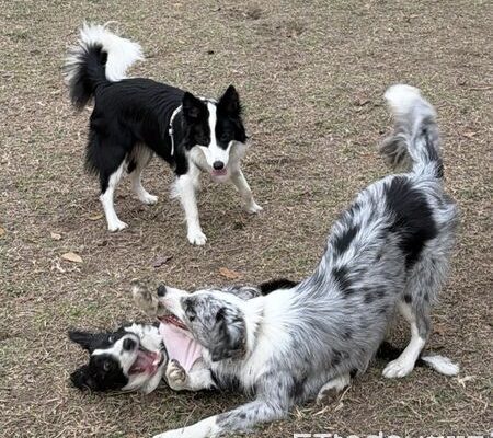 邊境牧羊犬「阿夢」是9個月大的小女生,從小牠就喜歡躺在布偶姐姐雪球的身上,長大後依然繼續保持著這個令人安心的習慣。然而對雪球來說,這份13.5公斤的愛實在過於沉重,被妹妹當枕頭重壓時的眼神超級不悅。
